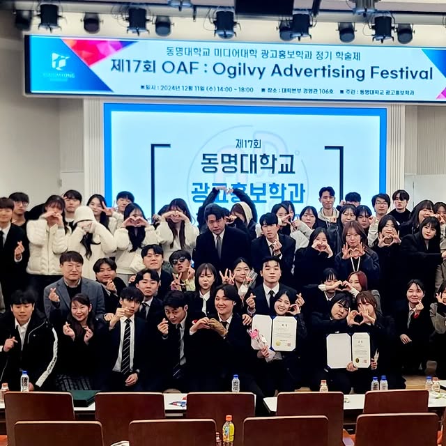 📣 동명대 광고홍보학과의 학술제, 제17회 OAF가 끝났습니다. ✨️ 수고해주신 학생회, 조교 선생님, 그리고 학생 여러분 감사드립니다. 이제 학기도 막바지