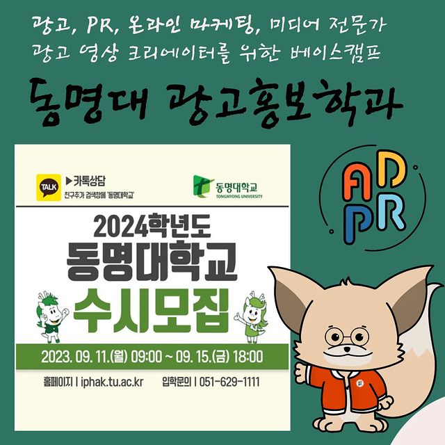 📣 동명대 광고홍보학과 수시모집! 벌써 입시철이.. 시간 참 빠릅니다. 😊 멋진 신입생들과 함께할 2024년을 기다립니다. ✨️✨️ 동명대 광고홍보학과는 수시
