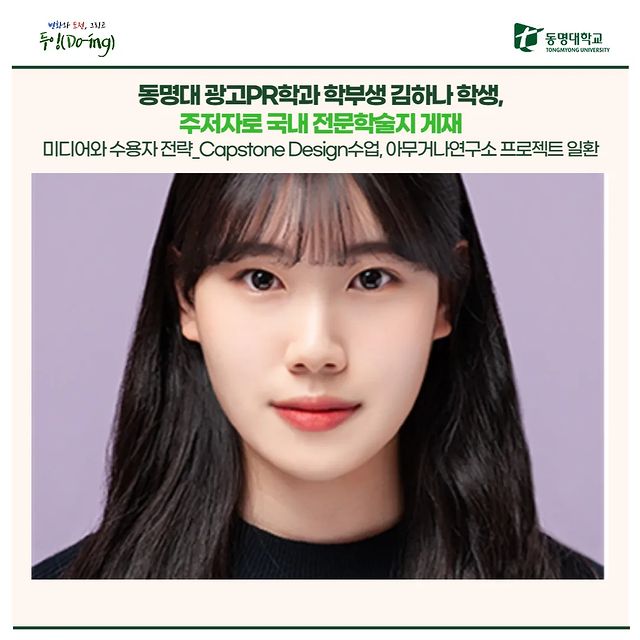 📣 김하나 학생의 논문 게재 소식입니다. PR분야 저명 학술지인 PR연구 27권 1호에 김하나 학생의 논문이 게재됐습니다. 곧 디비피아 등에서 확인 할 수