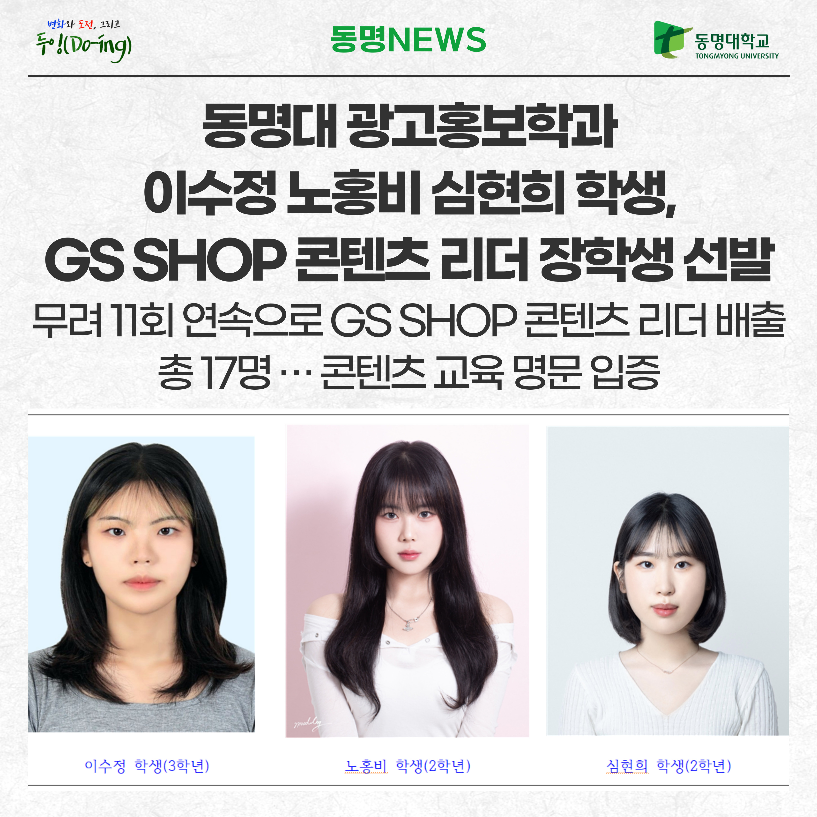 13회 GS SHOP 콘텐츠리더 이수정, 노홍비, 심현희 선발