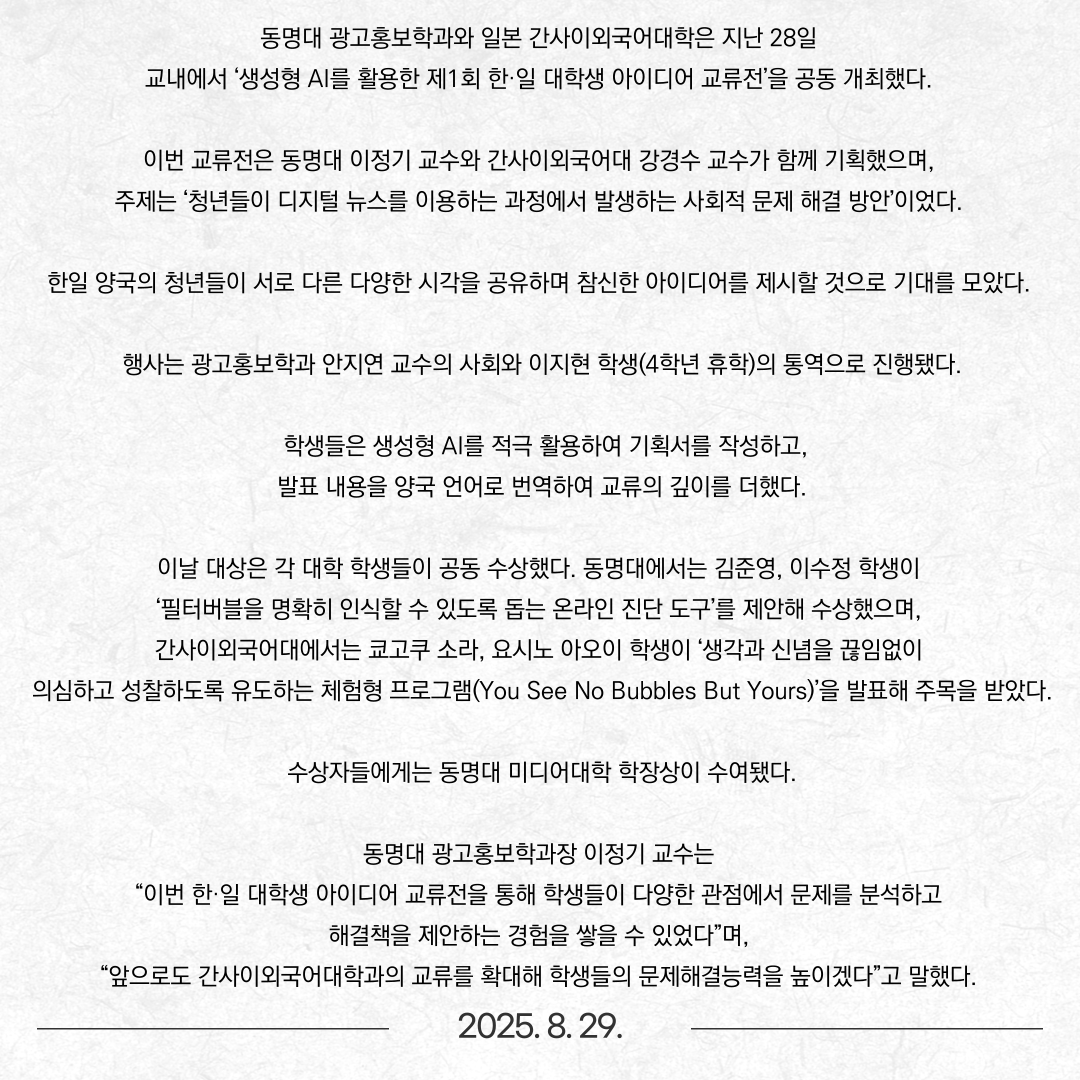 동명대 광고홍보학과 X 일본 간사이외국어대 한일 아이디어 교류전 개최 사진(2025.08.29)