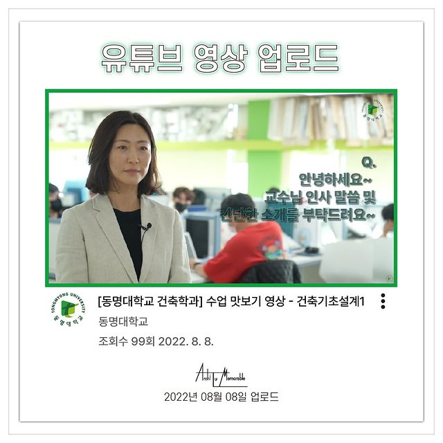 두번째로는 문정필 교수님의 건축설계2 과목의 맛보기 영상이다요✨
