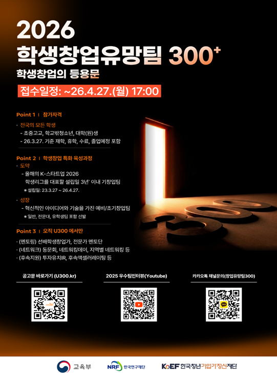 2026 학생 창업유망팀 300+ 참가 학생 모집 공고