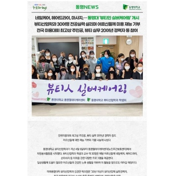 동명대학교 뷰티산업학과 봉사활동 (데일리한국 신문)