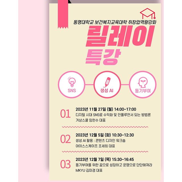 동명대학교에서 창업자 및 사업자를 위한 창업 특강이 진행됩니다~많은 참석 부탁드려요~