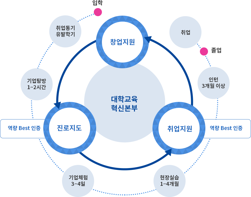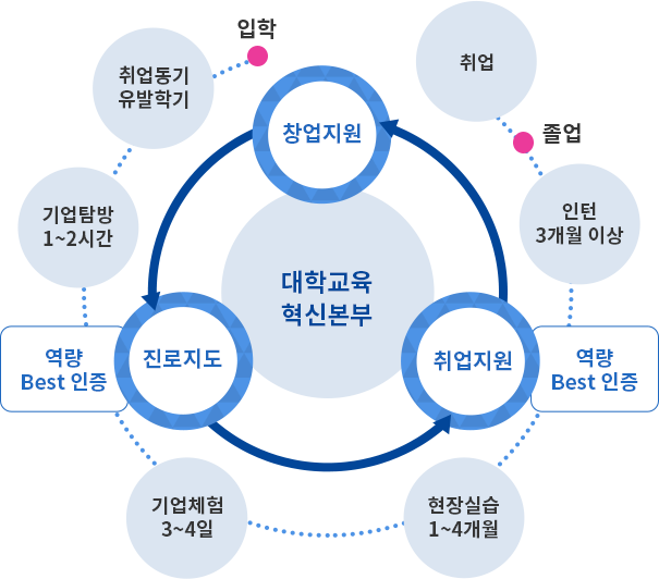 - 진로/취업상담 및 창업 교과/비교과 프로그램을 통한 현장체험형 전문인력 양성