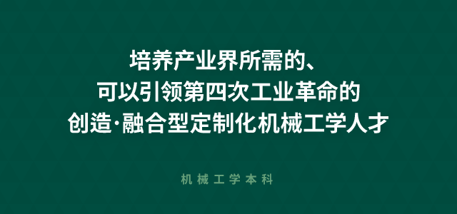 机械工学本科是为了迎接即将到来的第四次工业革命(3D打印机、无人机、无人驾驶车等),学习和训练可以设计、制作和应用未来机械系统(自动化机械、机器人、汽车、飞机、造船等)相关知识和技术的专业。本科由机械工学、机械设计、只能机械等三个专业领域构成。因此,本科学生应学会传统机械工学,打好基础,还应学习力设计、3D打印机(快速造型)等尖端技术,以及有关机器人和无人机等智能机械的技术,以此培养可以开拓未来的工学人才。同时,为了加强学生的实务能力,开设了与现场相连接的产学融合课程,并实施产学合作研究。机械工学本科旨在培养能够引领21世纪所要求的尖端机械工学领域的优秀人才。