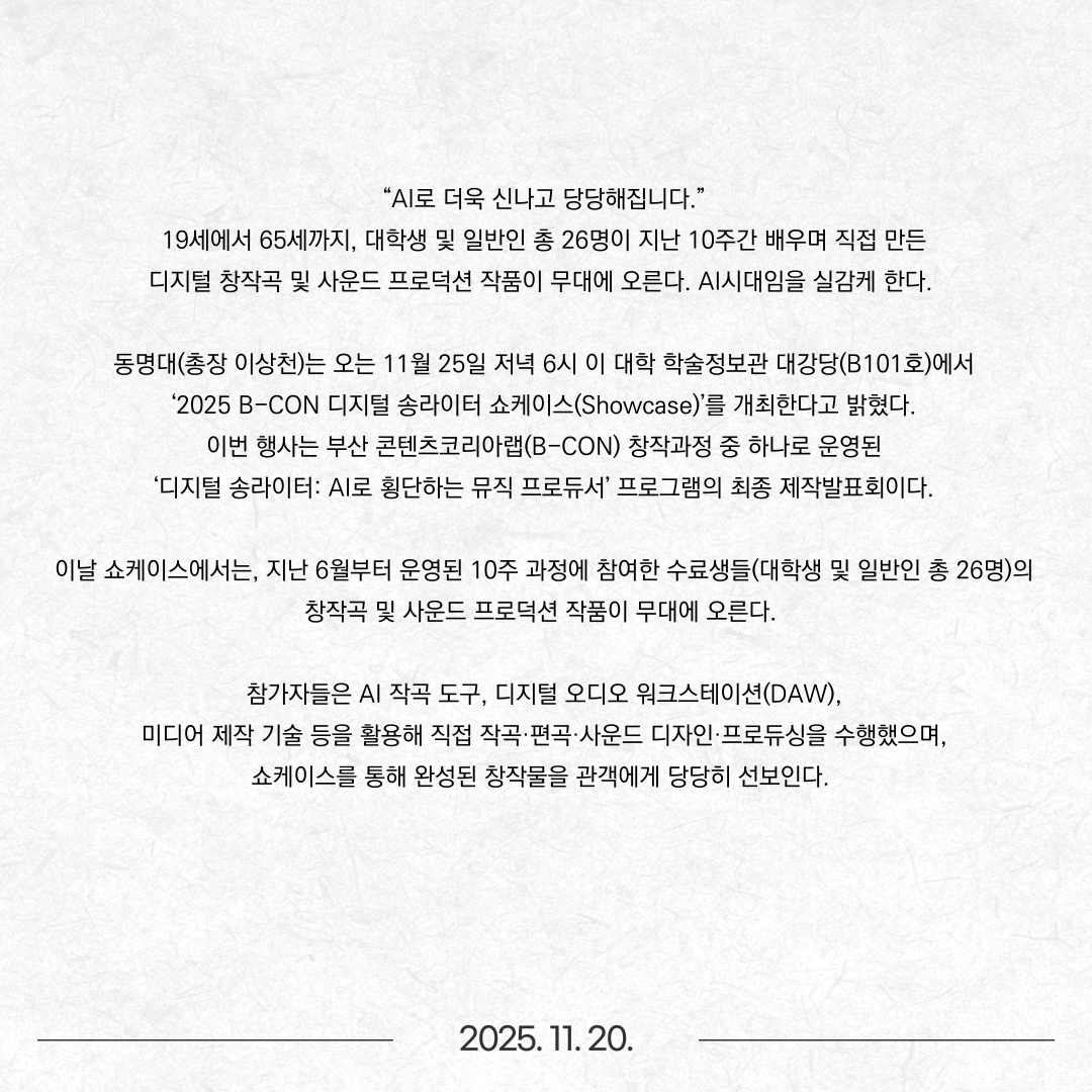 동명대학교 재학/휴학생 대상 TU Records 모집