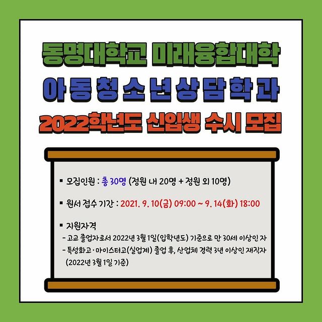 <2022학년도 동명대학교 미래융합대학 아동청소년상담학과 신입생 모집안내>