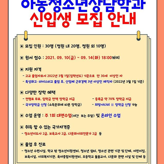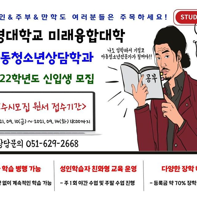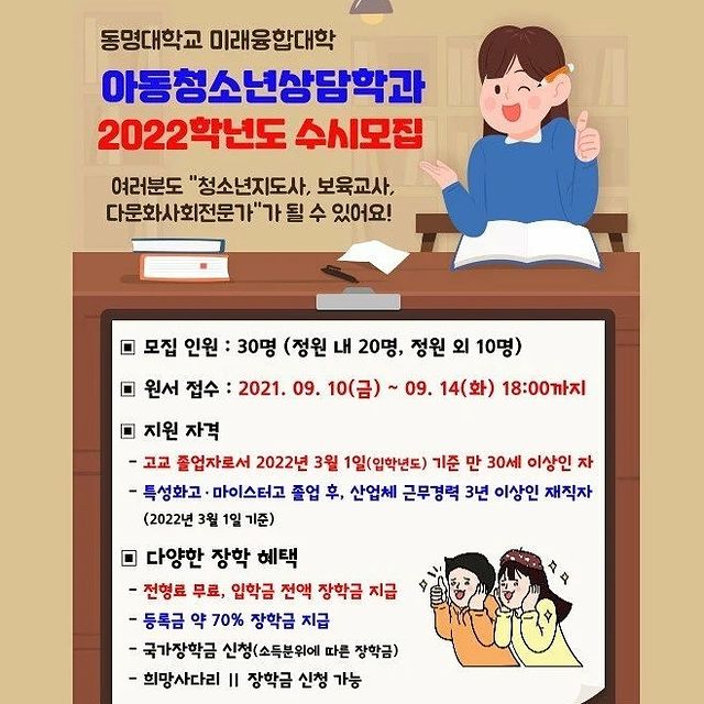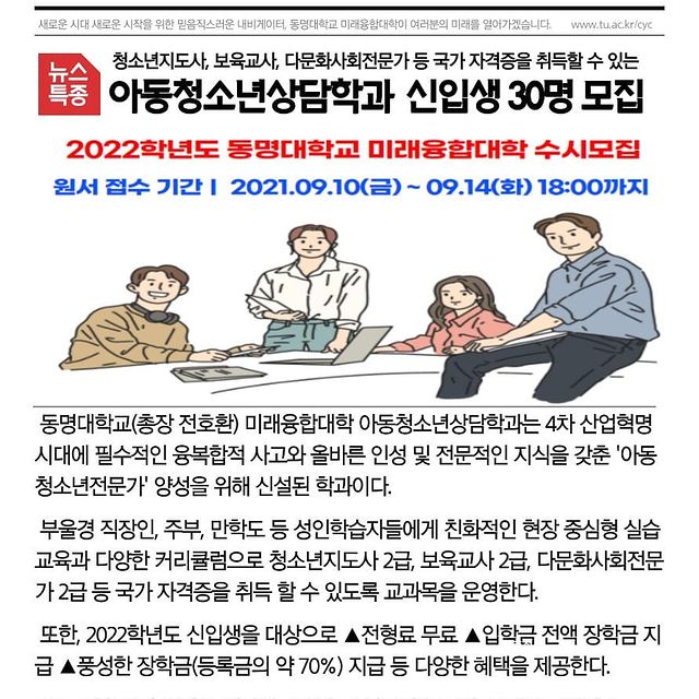 <2022학년도 동명대학교 미래융합대학 아동청소년상담학과 수시모집 안내>