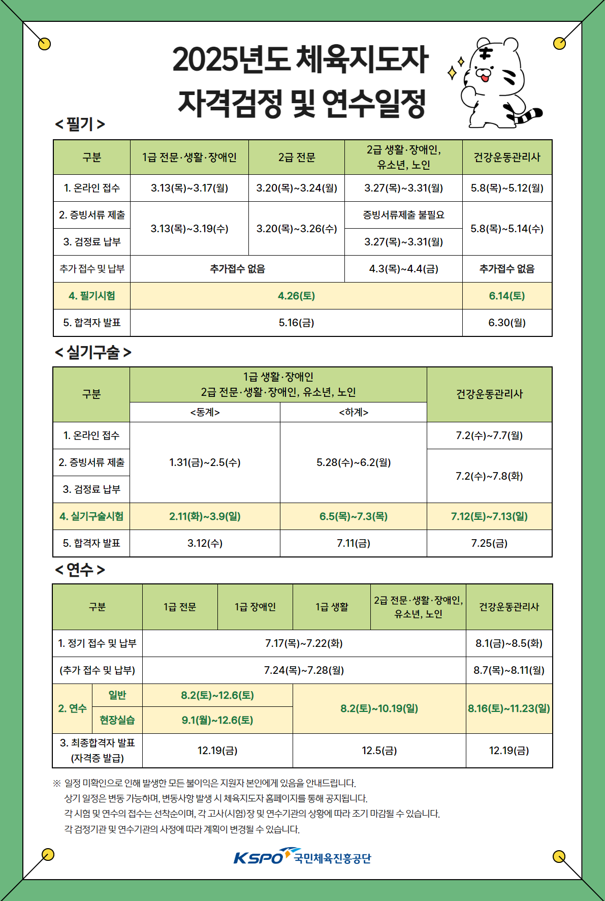 2025년도 체육지도자 자격검정 및 연수일정