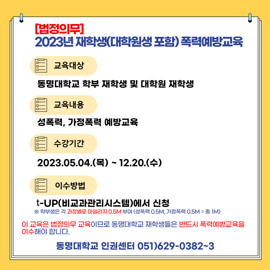 [법정의무]2023년 재학생(대학원생 포함) 폭력예방교육 실시 안내