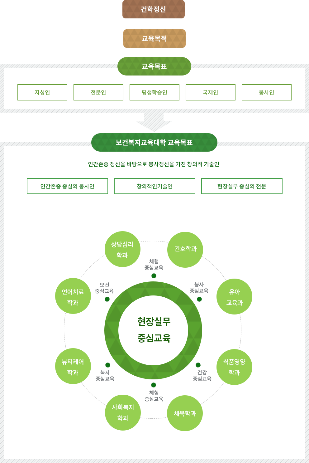 보건복지교육대학은 행복지향의 전문인력 양성에 교육을 목표를 둡니다