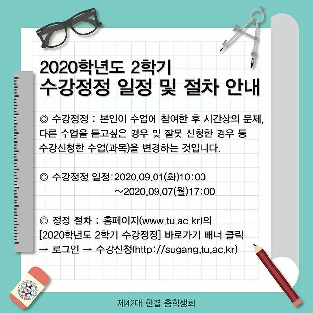 안녕하세요 자율전공학부입니다 2020년 2학기 수강정정 일정 및 인증절차입니다