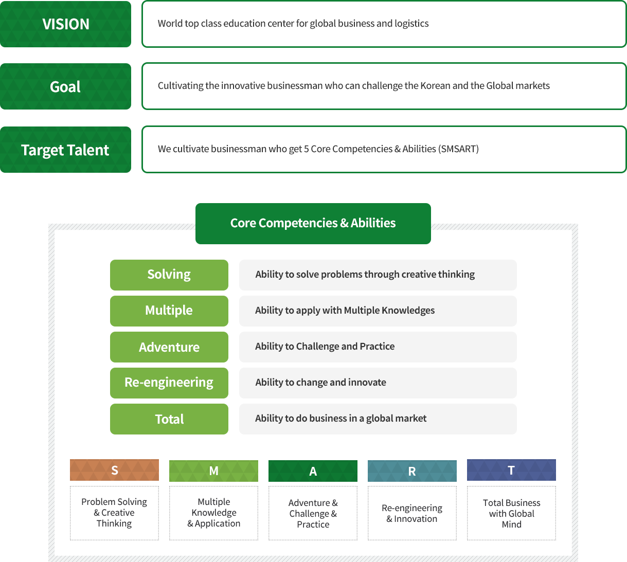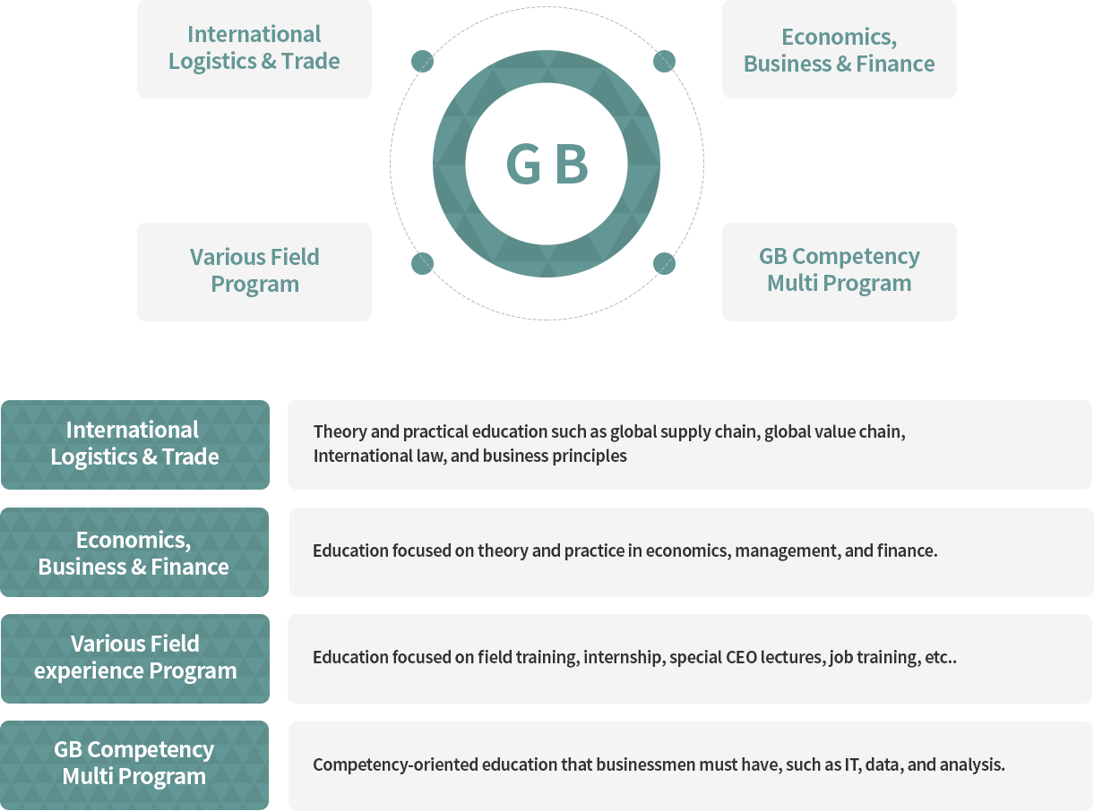 The department of Global Business (GB) is a unique and special international program, aimed at advancing promising young professionals into the future general managers, executives and leaders of the business and logistics Industry in Busan at the shipping, transport and logistics heart of East Asia.
