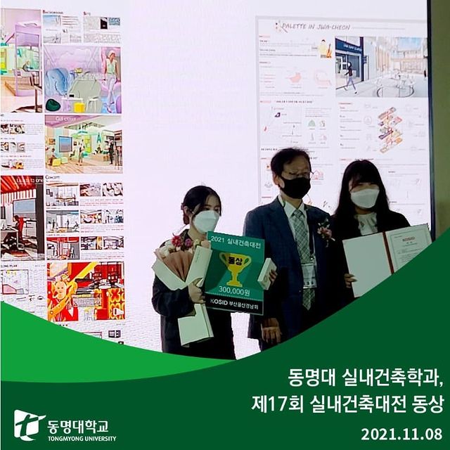 동명대학교 실내건축학과 3학년 김진영, 김승주 학생이 부울경 코시드 실내건축대전에서 동상을 수상하였습니다