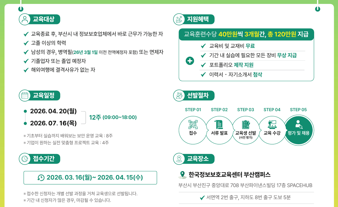 부산/경남권 정보보호 전문기업에 취업 연계되는 교육 과정입니다.