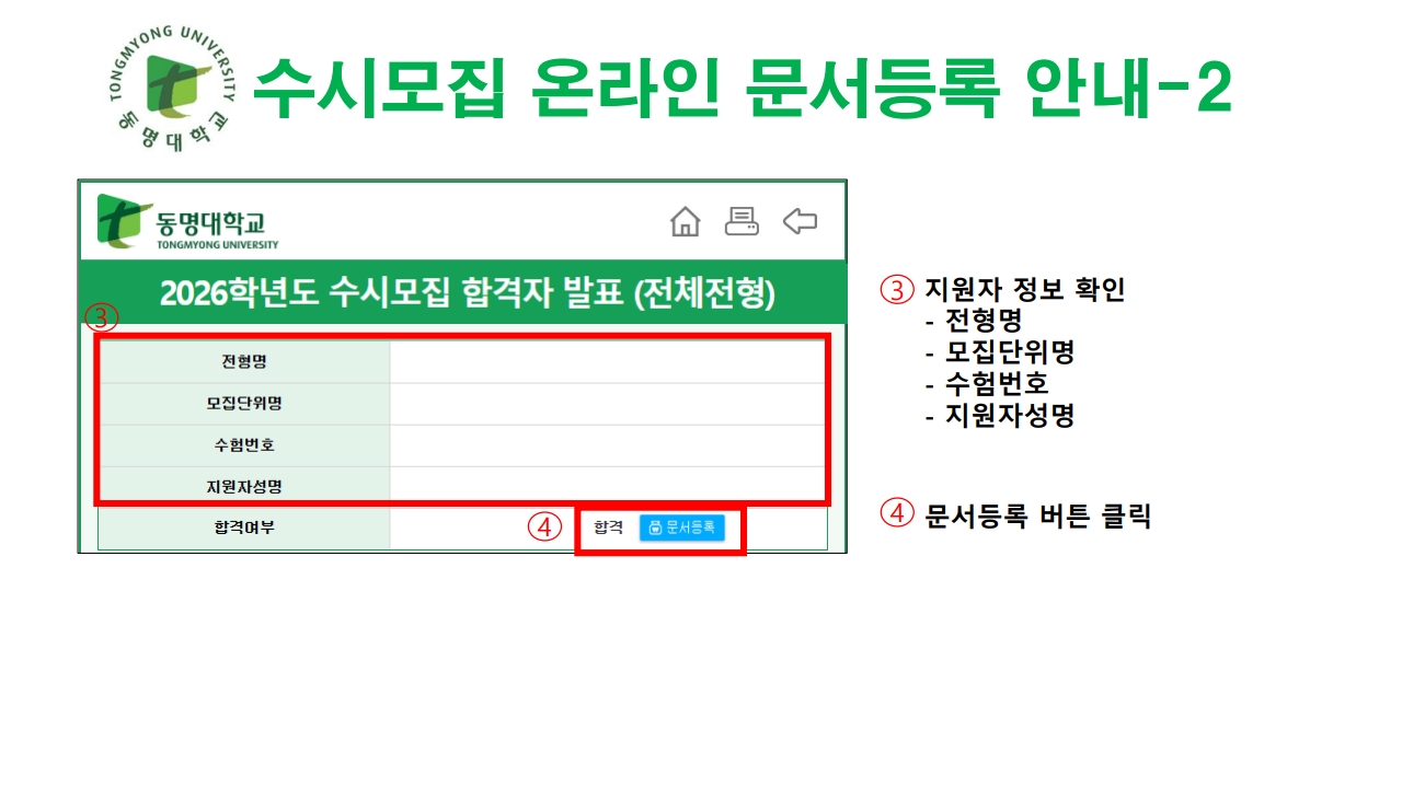 2026학년도 수시 지원자 최초합격자 등록 안내