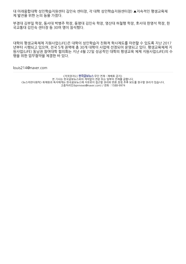 동명대 등 동남·충청권 6개대학, 평생교육체제사업활성화 맞손
