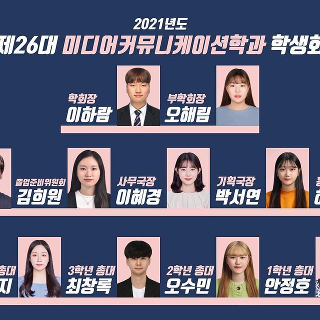 [2021년도 제26대 미디어커뮤니케이션학과 학생회 조직도]