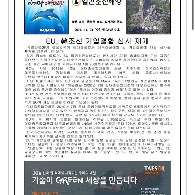 2021년 11월 24일 수요일 일간조선해양일보입니다.