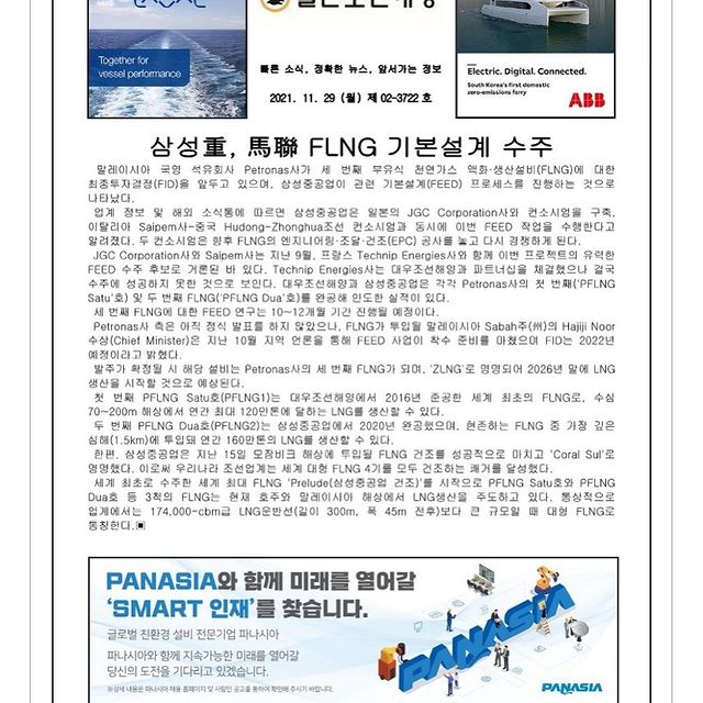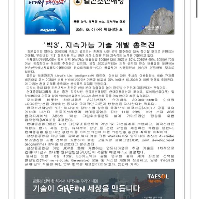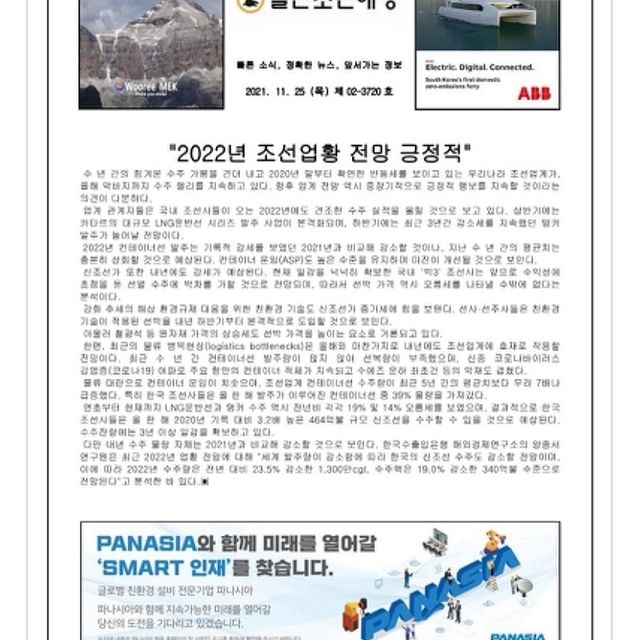 2021년 11월 22일 월요일 일간조선해양일보입니다.