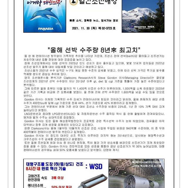 2021년 11월 23일 화요일 일간조선해양일보입니다.