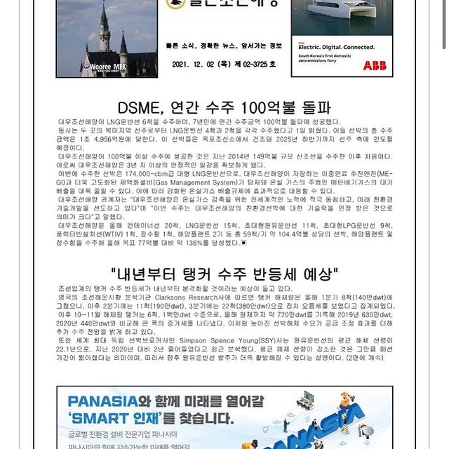 2021년 12월 2일 목요일 일간조선해양일보입니다.