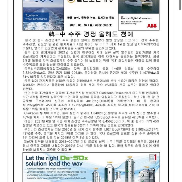 2021년 8월 11일 수요일 일간조선해양일보입니다.