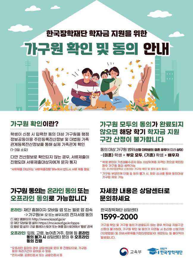 2026-1학기 국가장학금 가구원 정보제공 동의 안내(~3/24 화요일 18시까지)