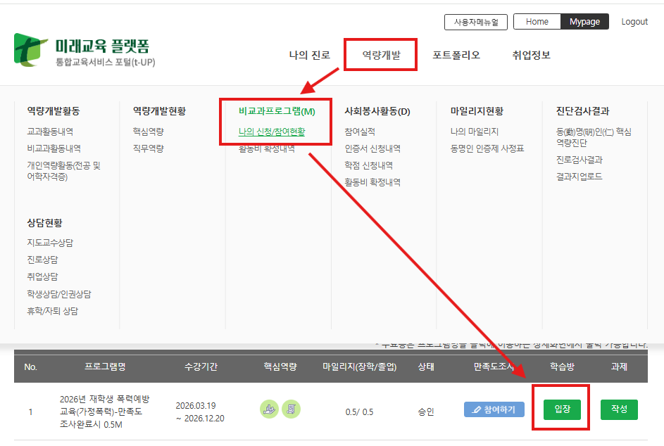 다. 이수방법 : t -up 비교과관리시스템(https://tup.tu.ac.kr/index.jsp0) 에 개별 접속 후 교육 동영상 수강