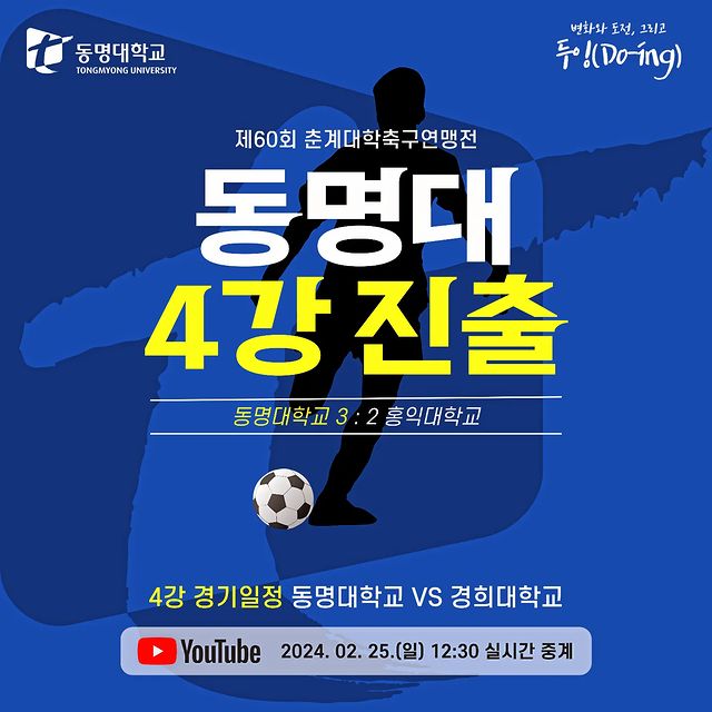 [동명대학교 축구부 제60회 춘계대회 축구연맹전 전국대학 우승 알림]