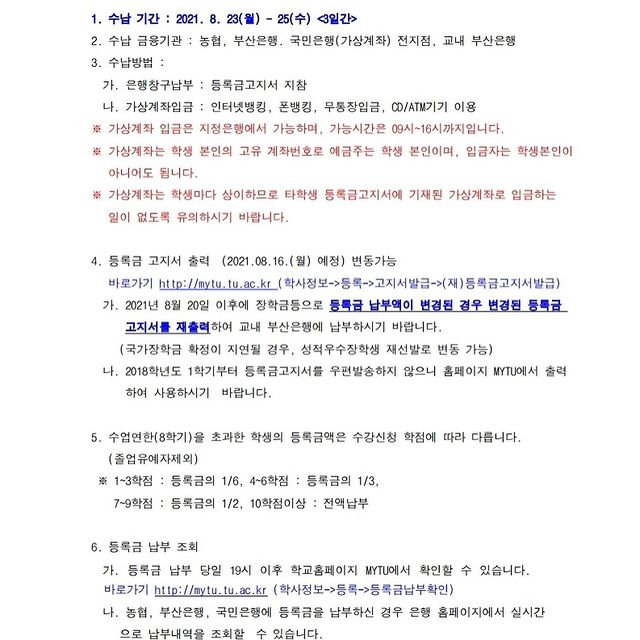 🗣 2021-2학기 본등록 수납기간 변경 알림 🗣