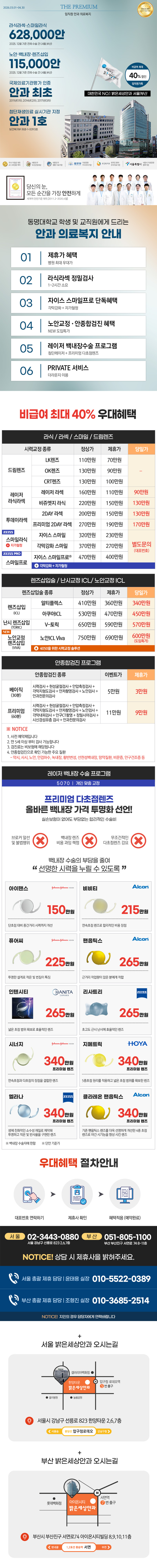 서울부산밝은세상안과 2026년 3~4월 교직원 우대 혜택
