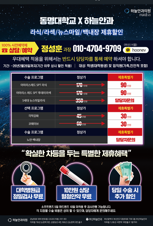 - 라식/라섹 수술비용 제휴가 할인