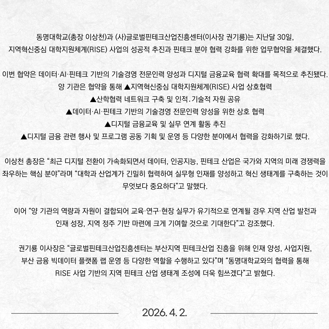 동명대-(사)글로벌핀테크산업진흥센터 업무협약 체결